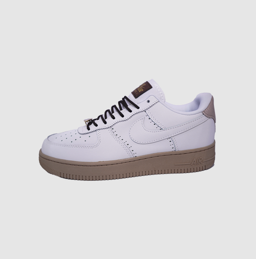 Las Air Force 1 Low “Brogue Sail” reinventan el clásico modelo AF1 con un enfoque elegante inspirado en el calzado formal brogue. El upper está confeccionado en cuero Premium color Sail/White, realzado con perforaciones decorativas en la puntera y los paneles laterales que imitan el patrón tradicional de zapatos brogue. Los ojales presentan un diseño serrado (“sawtooth”) que añade un detalle visual sofisticado y texturado. La lengüeta es de canvas con una etiqueta de cuero marrón, mientras que los cordones encerados tipo wax rope refuerzan el aire formal del diseño.