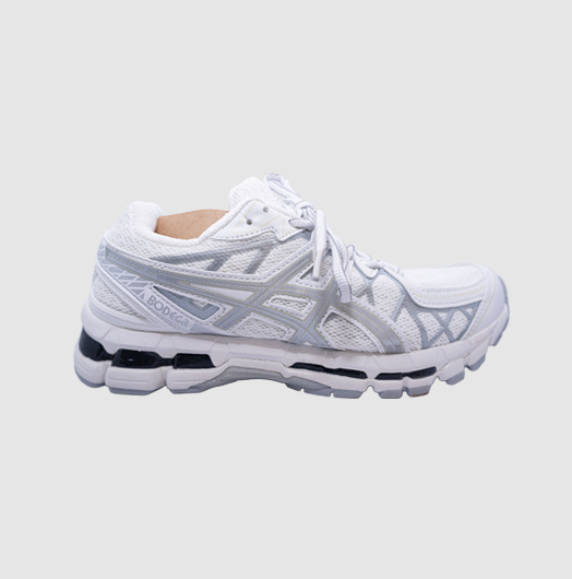 Las ASICS Gel-Kayano 20 x Bodega White fusionan el ADN runner del Kayano 20 con el enfoque creativo de Bodega, destacando por su estética limpia y detalles premium.
