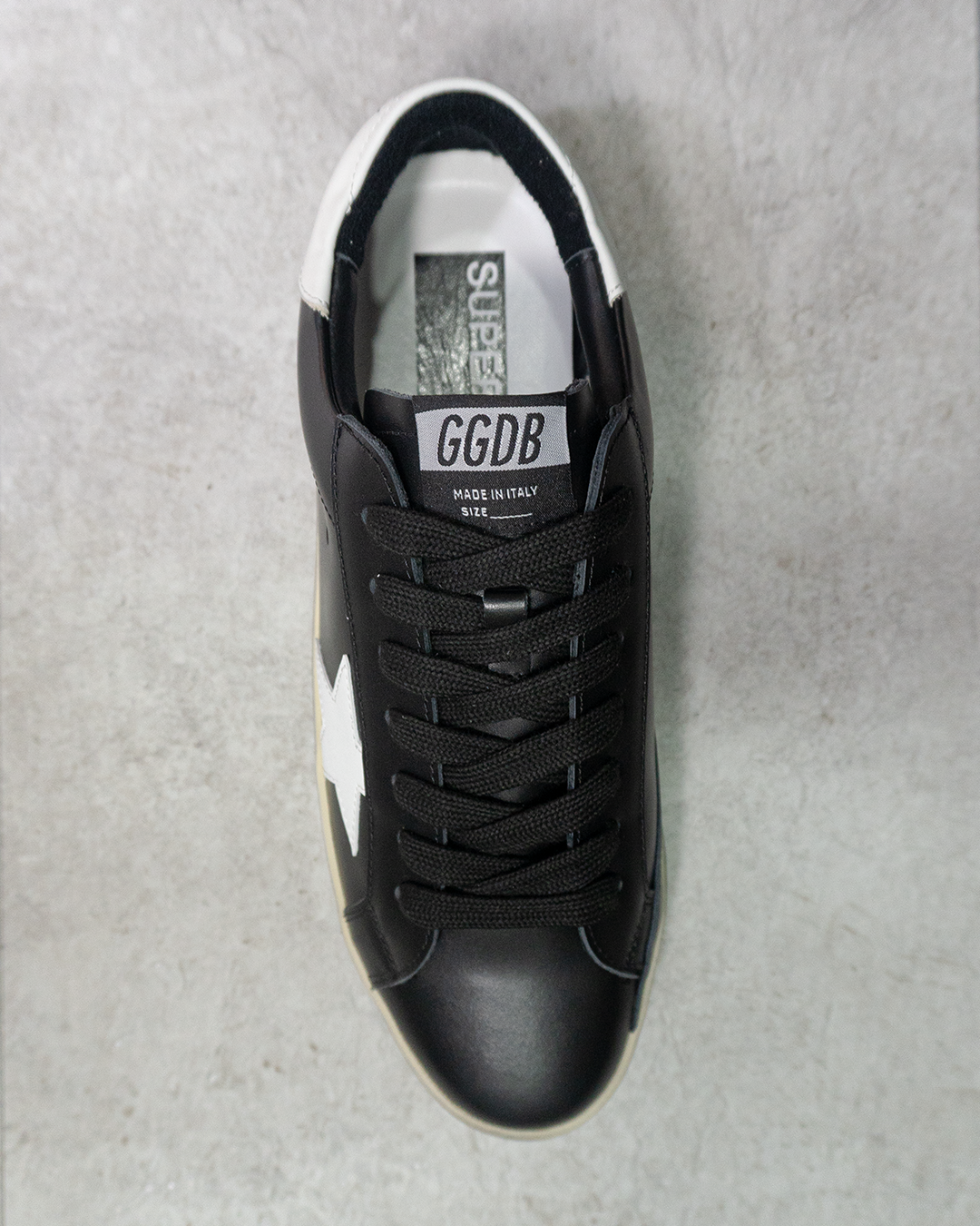 Las Golden Goose Super-Star Black Gold combinan cuero premium con acabados desgastados y detalles en dorado. Diseñadas por Golden Goose, ofrecen confort, exclusividad y estilo.