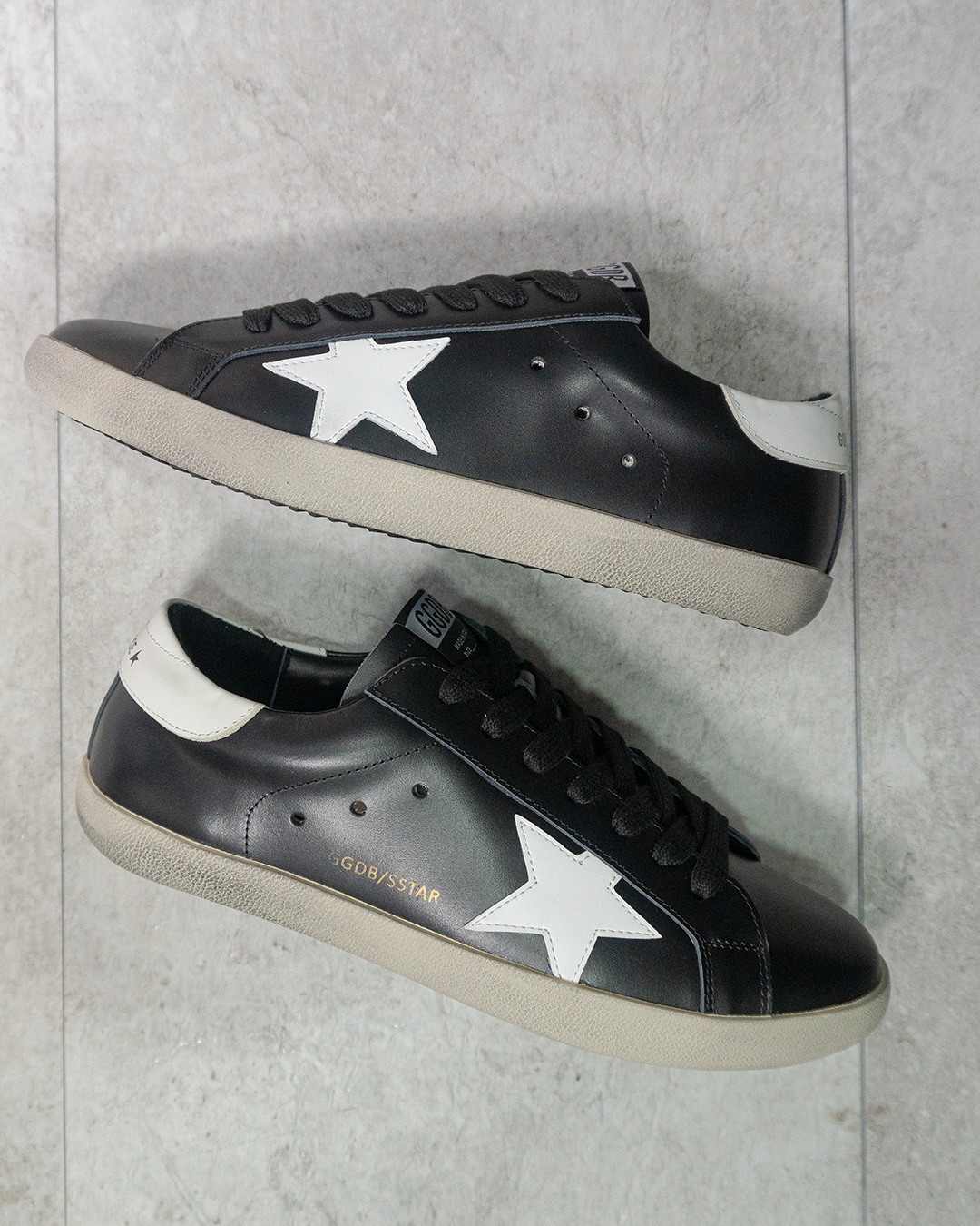En cuanto a materiales, estas Super-Star combinan cuero premium de alta calidad con acabados cuidadosamente envejecidos, logrando una textura única y llena de carácter. La base en negro profundo se complementa con la icónica estrella lateral en dorado metálico, generando un contraste elegante que eleva el diseño sin perder su esencia urbana.