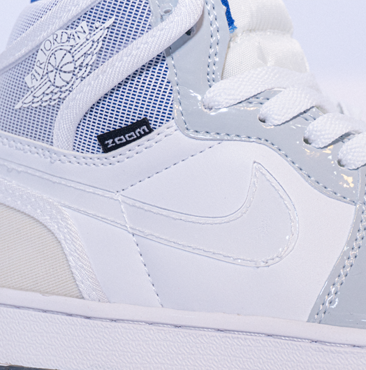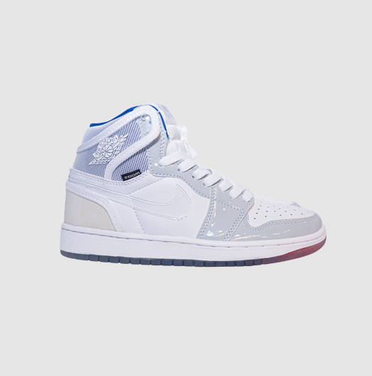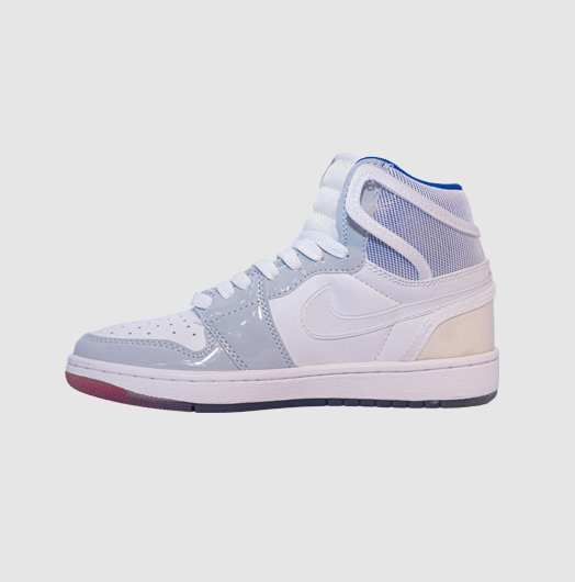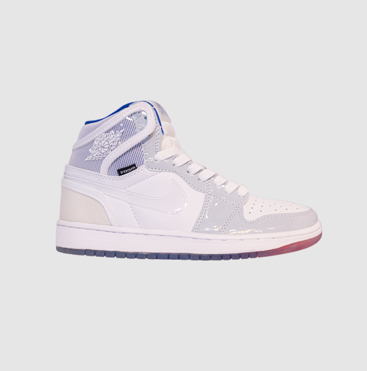 Este par reinterpreta la silueta OG de la Air Jordan 1 con innovaciones que la hacen destacar: el upper está hecho en cuero blanco premium, mientras que los overlays incluyen materiales translúcidos en el tobillo y talón, además de patent leather gris claro que aporta un toque brillante y futurista. Incluye Zoom Air a lo largo de la plantilla para una amortiguación reactiva, ideal para quienes buscan estilo OG sin sacrificar comodidad. Un detalle visual potente es la suela translúcida con graduado de color azul-rojo, que añade carácter y diferencia al diseño