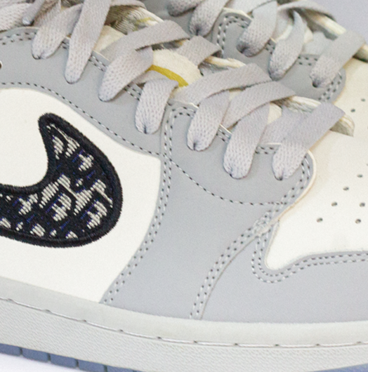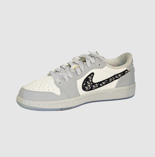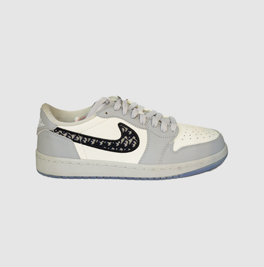 El resultado de una colaboración histórica entre Jordan Brand y la casa de moda Dior, este Jordan 1 Low es una obra maestra que une el streetwear con la alta costura. Fabricado en cuero italiano de altísima calidad, el upper combina tonos blanco y gris Dior Grey, colores clásicos de la maison francesa. El icónico Swoosh está confeccionado en jacquard con el monograma Dior Oblique, aportando un toque inconfundible de exclusividad. Detalles como el logo “Air Dior” en las alas del talón, la lengüeta co-branding, y la suela translúcida con el logo Dior completan este diseño premium.