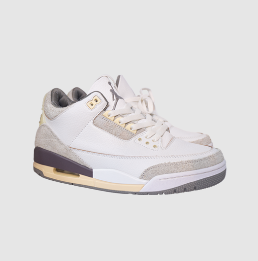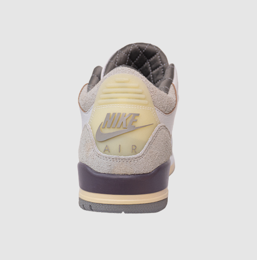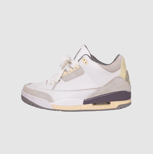 Su diseño destaca por una paleta en tonos crema, gris y borgoña, combinada con materiales premium como cuero de alta calidad, detalles acolchados y acabados refinados que elevan la silueta clásica de las Jordan 3. El interior tipo satén, los toques sutiles de branding y la estética minimalista aportan un enfoque elegante y maduro al modelo.