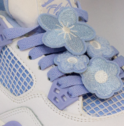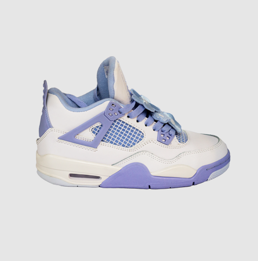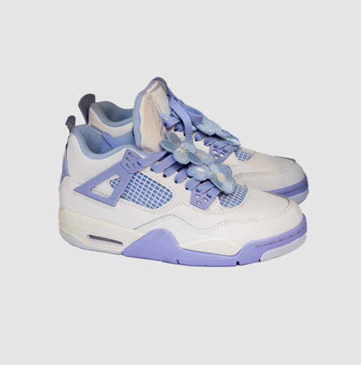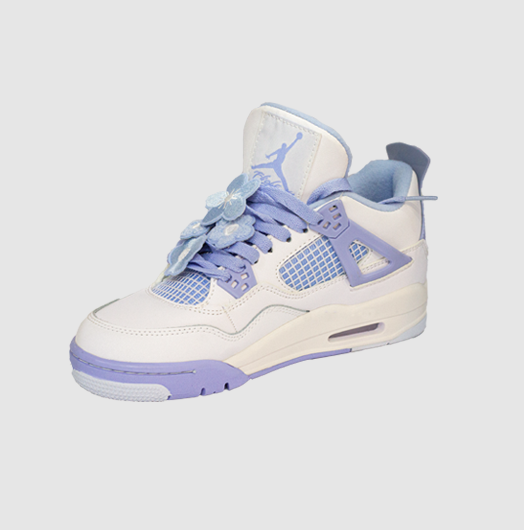 Diseñadas en colaboración con la boutique neoyorquina Forget-Me-Nots, estas Air Jordan 4 son un homenaje a la fuerza, memoria y presencia femenina en la cultura sneaker. El upper en nubuck premium azul pastel toma inspiración directa de la flor “no me olvides”, mientras que los detalles en blanco roto, gris suave y tonos crema equilibran el diseño con delicadeza. La estructura clásica del modelo se mantiene: malla en los paneles laterales, unidades Air visibles, y los soportes de TPU translúcido, que añaden un toque moderno.
