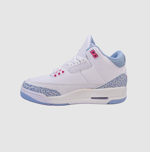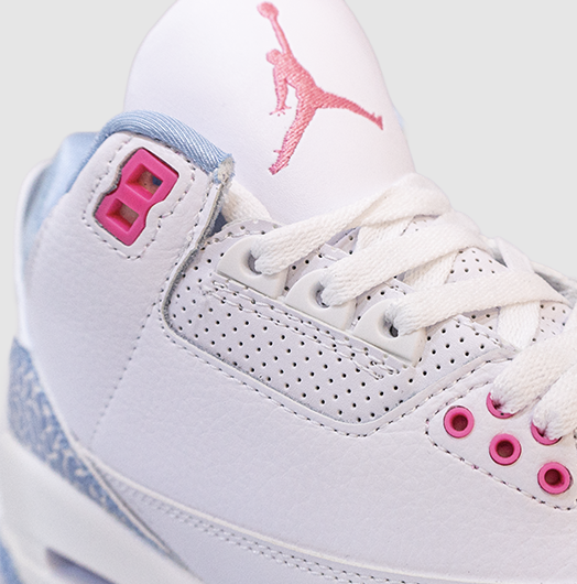 En cuanto a materiales, estas Jordan 3 destacan por su construcción en cuero blanco premium, ofreciendo durabilidad, estructura y un acabado de alta calidad. Los característicos paneles en elephant print en puntera y talón se mantienen, reforzando la identidad histórica del modelo, mientras que los detalles en azul vibrante añaden contraste y personalidad al diseño.