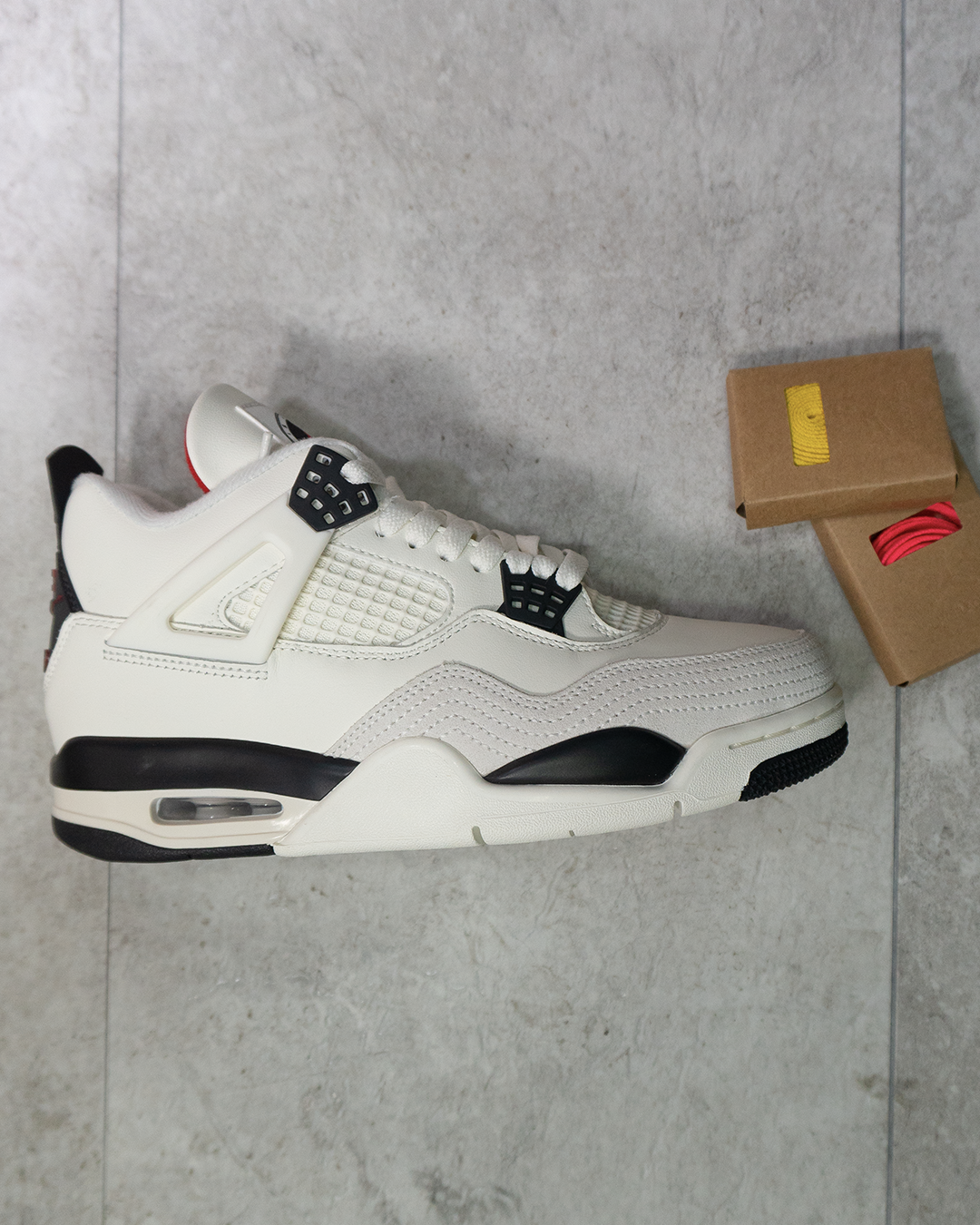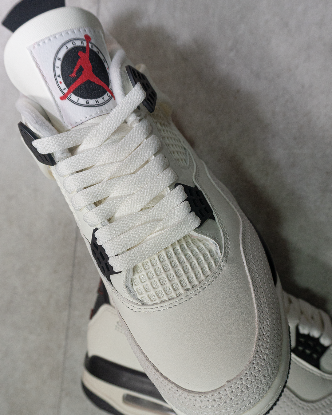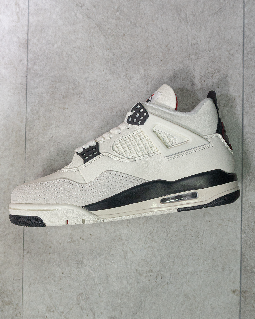 El diseño mantiene todos los elementos característicos de las Jordan 4: malla lateral para ventilación, alas estructurales que aportan soporte y una silueta robusta que define su identidad. El interior acolchado brinda confort durante todo el día, mientras que la mediasuela incorpora la clásica unidad Air visible en el talón, proporcionando una pisada suave y estable.