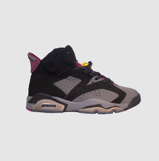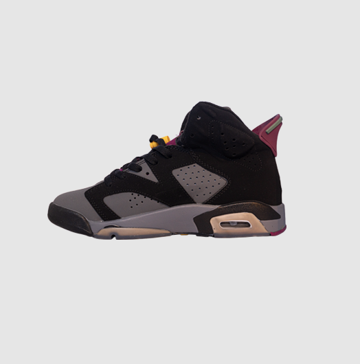 Las Air Jordan 6 Retro “Bordeaux” (2021) son una oda al legado de la línea Jordan y al icónico colorway “Bordeaux” del AJ7. Lanzadas el 4 de septiembre de 2021, esta zapatilla combina materiales premium con detalles de diseño que cuentan historia. El upper está confeccionado con nubuck suave en tonos Light Graphite / Dark Grey como base, sobre la que se aplican overlays en negro que aportan contraste. Los acentos Bordeaux (vino tinto) aparecen de forma destacada en la lengüeta de neopreno, en el pull tab del talón y en el torniquete de la lengüeta.