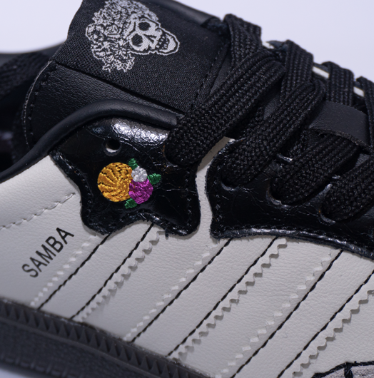 Las Samba Día de Muertos – Blanco rinden homenaje a una de las celebraciones más emblemáticas de México, fusionando el icónico diseño futbolero de las Samba con toques culturales llenos de significado. Su parte superior en piel premium blanca aporta elegancia y versatilidad, mientras que los detalles gráficos y bordados inspirados en el Día de Muertos evocan ofrendas, flores de cempasúchil y arte tradicional. La suela de goma color caramelo mantiene la esencia vintage del modelo, ofreciendo tracción y durabilidad. Perfectas para quienes buscan una pieza única que combine herencia, estilo urbano y un tributo a la tradición.