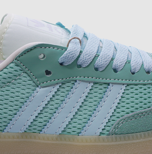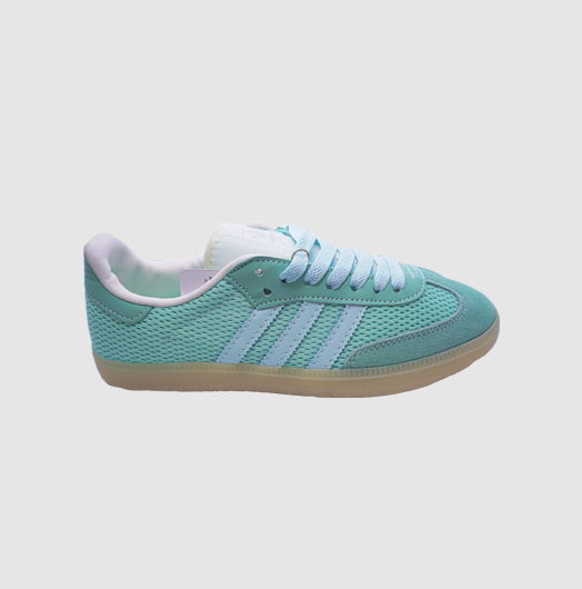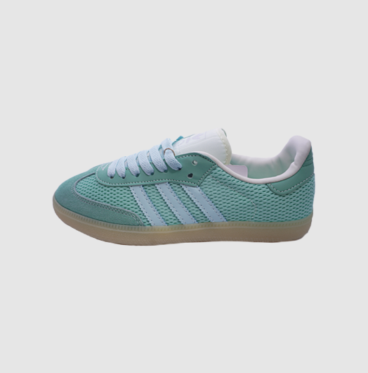 Un clásico que nunca falla, ahora con un refrescante giro. Las adidas Samba OG “Green Mint” mantienen la esencia del diseño original con un upper en cuero blanco de alta calidad, reforzado con una puntera en gamuza gris clara. Lo que realmente las hace destacar es el toque verde menta en las icónicas 3 franjas laterales y el talón, que aportan una vibra fresca y moderna sin perder el ADN retro. La suela color caramelo sigue presente para ofrecer ese look vintage que tanto nos gusta. Son ideales para outfits minimalistas, tonos tierra o para dar vida a looks monocromáticos. Desde una salida casual hasta una tarde en la ciudad, este par es el equilibrio perfecto entre clásico y contemporáneo.