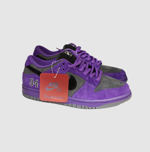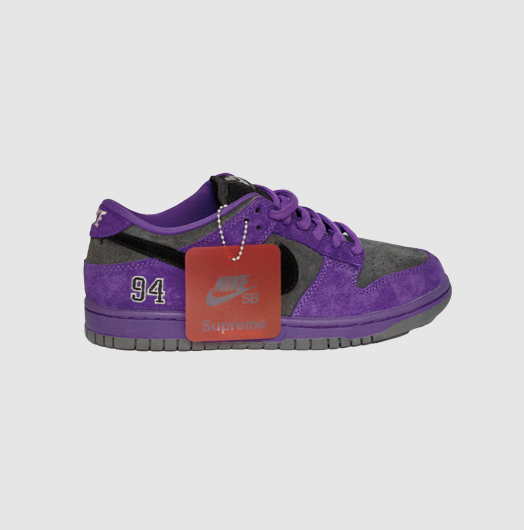 Esta versión del SB Dunk Low Supreme Purple rinde homenaje al legado del arte urbano y a la influencia de Supreme en el streetwear global. El upper está construido en gamuza premium púrpura, con detalles bordados y gráficos inspirados en las obras del artista neoyorquino Rammellzee. El icónico número “94” aparece en el costado externo, haciendo referencia al año de fundación de Supreme. El diseño se completa con el Swoosh en negro, suela clásica de goma y una lengüeta acolchada con plantilla Zoom Air, garantizando comodidad y soporte. Una fusión entre arte, cultura y skate, diseñada para destacar dentro y fuera del parque.
