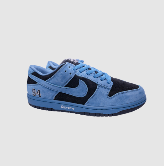 La Supreme x SB Dunk Low “Ocean Fog” llega como una de las cinco esperadas colaboraciones de Supreme con Nike Skateboarding para la primavera de 2025. Este modelo destaca por su construcción en ante de alta calidad: una base negra equilibrada con sobrecapas en el icónico tono azul “Ocean Fog”, presente en Swooshes, puntera, paneles y O-stays, logrando un equilibrado y atractivo contraste.