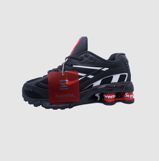 Las Nike Shox x Supreme Black representan la fusión perfecta entre innovación tecnológica y cultura streetwear. Esta colaboración entre Nike y Supreme revive la icónica silueta Shox con una estética agresiva, moderna y completamente alineada con el ADN urbano de ambas marcas.