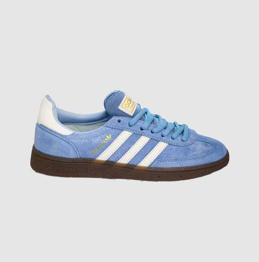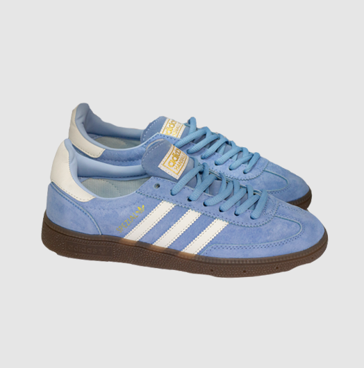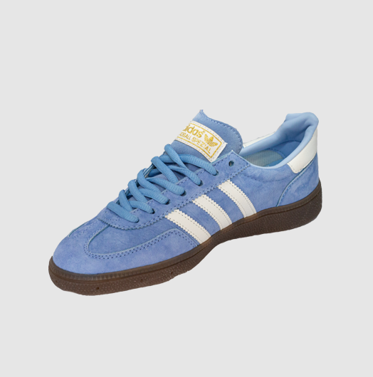 Una silueta que trasciende generaciones. Los Adidas Handball Spezial en azul claro fueron diseñados originalmente para el deporte indoor en los años 70, pero hoy son un ícono del estilo urbano y retro. Este par destaca por su empeine en gamuza premium, con un vibrante tono azul que contrasta con las tres franjas blancas clásicas de Adidas. El talón blanco y la suela en goma caramelo le aportan un toque vintage irresistible.