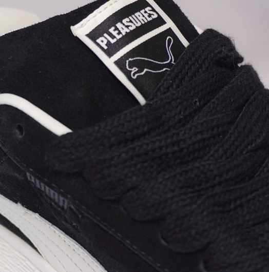 Los detalles exclusivos de Pleasures, reconocida por su enfoque disruptivo y contracultural, se plasman en acentos gráficos y toques que celebran la estética DIY de la escena skate y punk. El contraste de colores y materiales potencia su carácter audaz, mientras que la comodidad y resistencia de la suela clásica Puma garantizan que no solo luzcan bien, sino que duren.