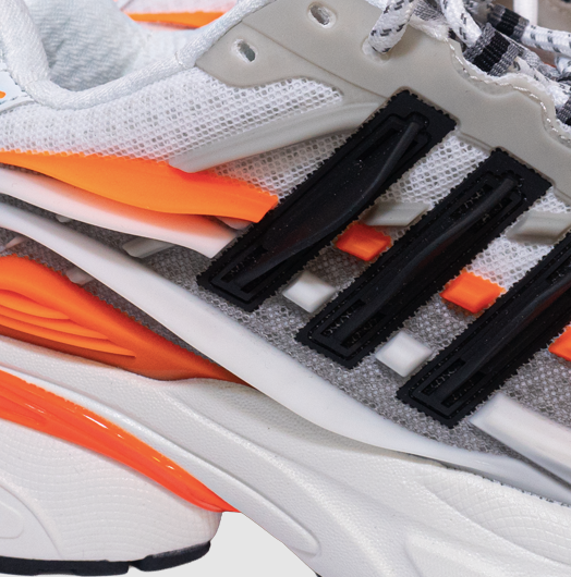 El upper tejido en Primeknit reciclado garantiza flexibilidad y transpirabilidad, mientras la entresuela Adistar con amortiguación reactiva proporciona un confort flotante, casi etéreo. Detalles como el branding HU y las líneas asimétricas reflejan la estética libre y sensorial de Pharrell, fusionando arte, movimiento y sostenibilidad.